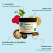 Hovedingredienser: Prebiotika, probiotika, quercetin, kolostrum, L-glutamin.