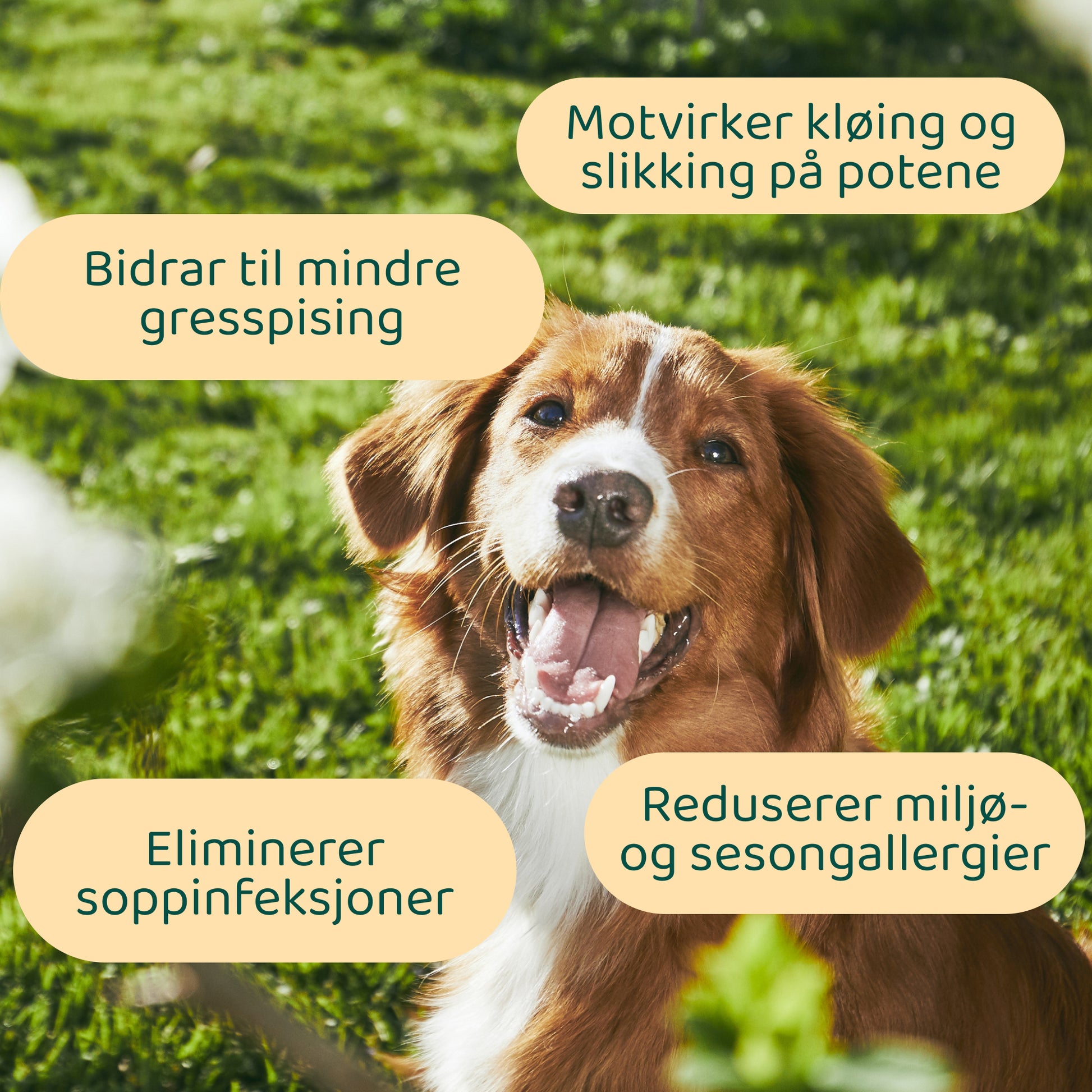 Reduserer kløe og støtter hundens hud, tarmhelse og immunforsvar.