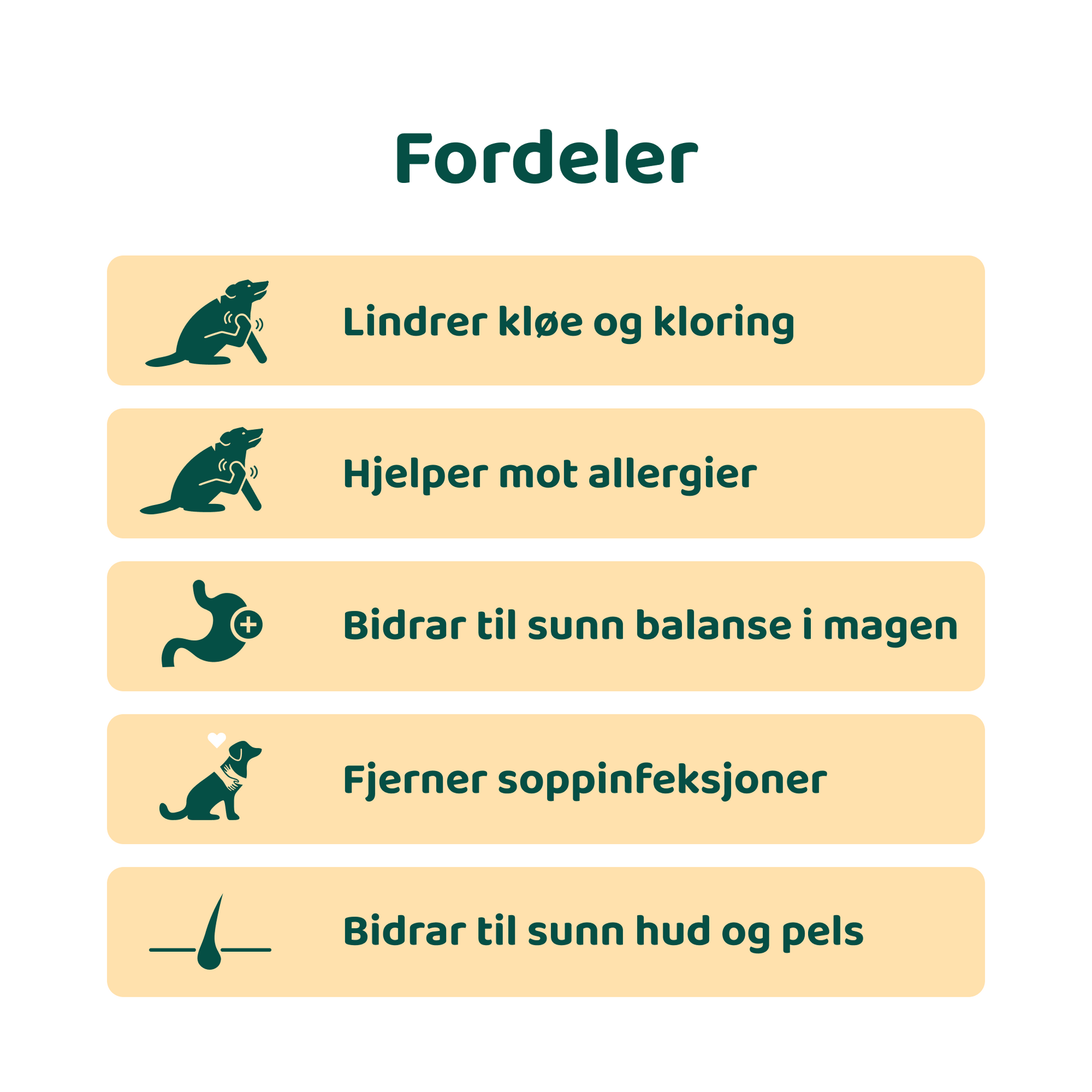 Alle produktene våre er laget med 100 % naturlige ingredienser og inneholder verken GMO, gluten, korn, sukker eller kunstige fargestoffer. De er utviklet av engasjerte ernæringsspesialister med over 10 års erfaring innen kosttilskudd for kjæledyr.